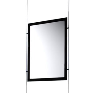 Encuentre arriba toda una gama de soportes para carteles diseñados para ser instalados suspendidos en cable, que incluye soluciones de suelo a techo, soluciones de pared o suspendidas con contrapesos. Estos soportes para carteles colgantes están disponibles en plexiglás transparente o en modo LED con iluminación integrada. Cada soporte para póster colgante a continuación se instala con abrazaderas que lo conectan a los cables (se venden por separado);